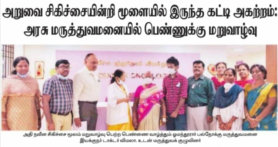 First in Tamil Nadu Government Hospitals to contour and plan Vestibular Schwannoma (Brain Tumour) treatment using high-dose single-fraction SRS technique at Tamil Nadu Govt Multi Super Speciality Hospital, Omandurar Estate (July 2022).